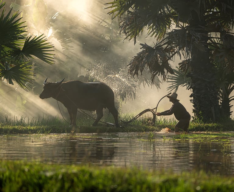 A true jack of all trades, Uncle Tuong is a farmer, a rancher, and a distiller. In Vietnam, many families live this way, where distilling and farming are inseparable parts of a sustainable life. Nothing is wasted: the leftover mash from distilling feeds the pigs, which in turn produce the most flavorful pork. Their manure then enriches the rice fields, ensuring the next harvest. And so the cycle continues—distilling, farming, and family, woven together in harmony.