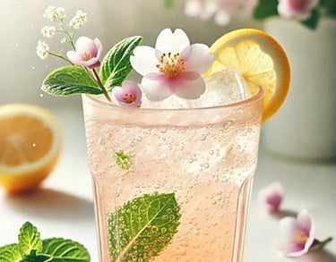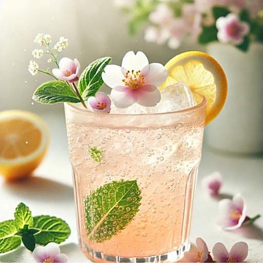 Garnish: Edible flowers, lemon wheel, mint sprig