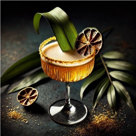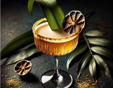 Garnish with a dehydrated lime wheel, a fresh pandan leaf, and a sprinkle of edible gold flakes.