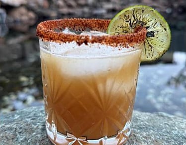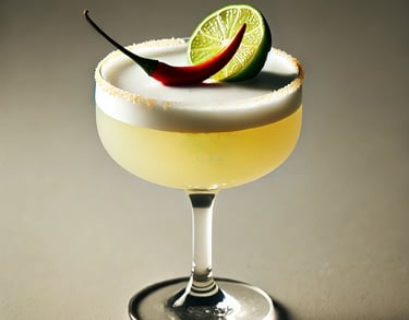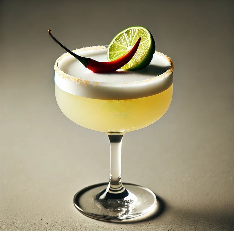 A bold and smoky cocktail that plays with contrasts of heat, sour, and sweetness.