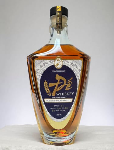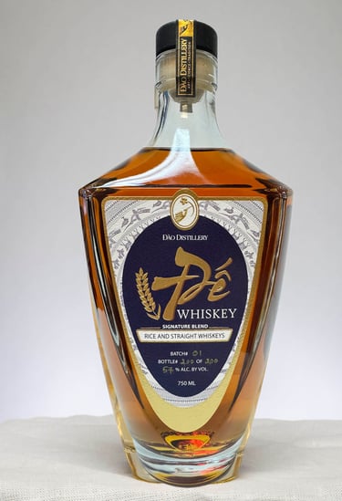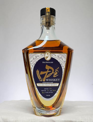 This unique Rượu Đế Whiskey consists of 50% rice whiskey, 30% straight rye whiskey, and 20% American single malt.